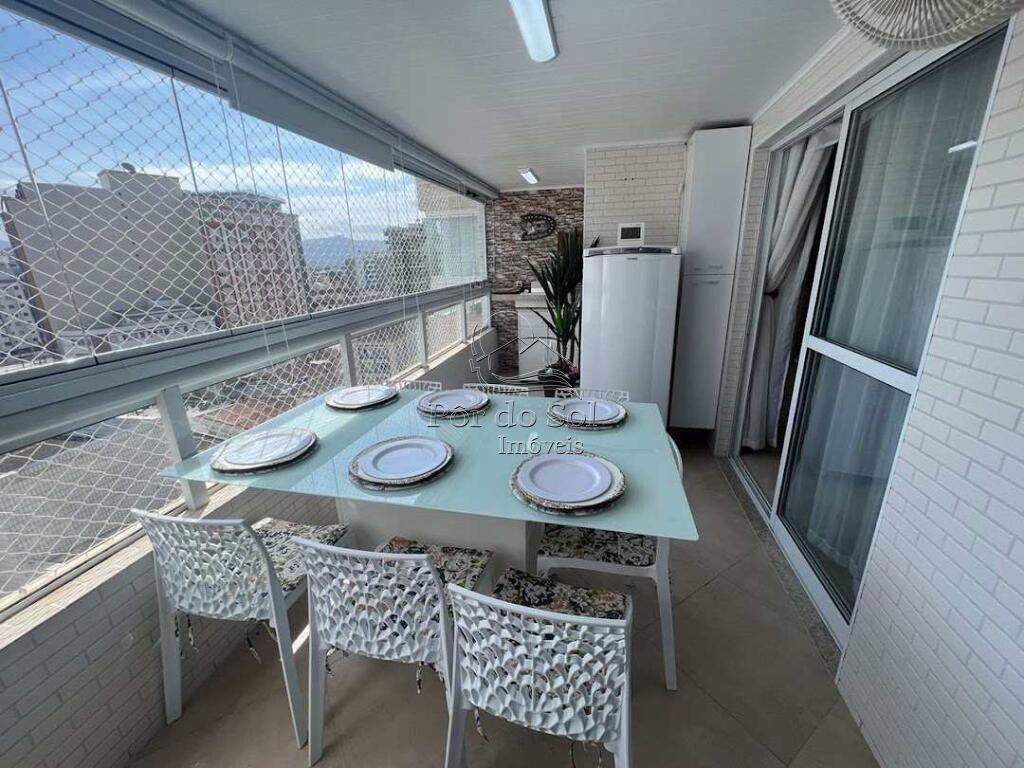 O apartamento é semi-mobiliado e conta com acabamento em porcelanato, cozinha americana planejada, churrasqueira na sacada envidraçada e closet, proporcionando um ambiente moderno e funcional. Localizado em andar alto de um prédio frente ao mar, o imóvel oferece vista privilegiada e excelente ventilação natural.
