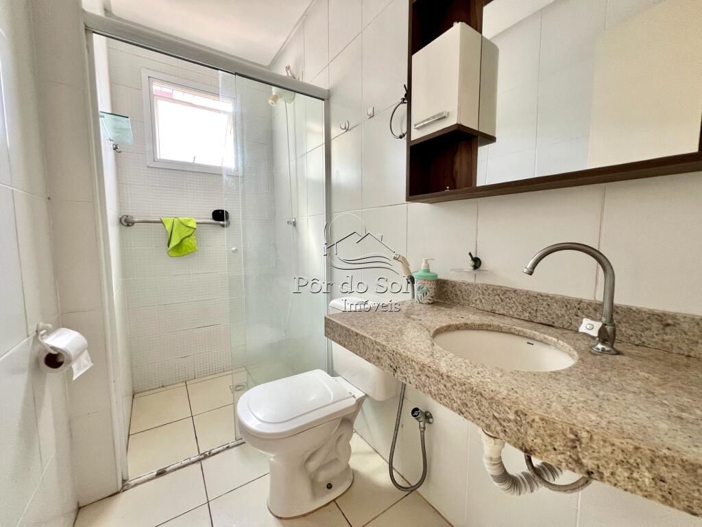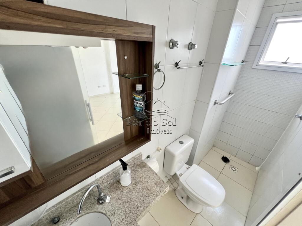 Apartamento com 2 dormitórios (sendo 1 suíte), sacada gourmet com vista mar permanente, sala para 2 ambientes, cozinha americana com armários planejados, banheiro social, área de serviço e 1 vaga de garagem.
