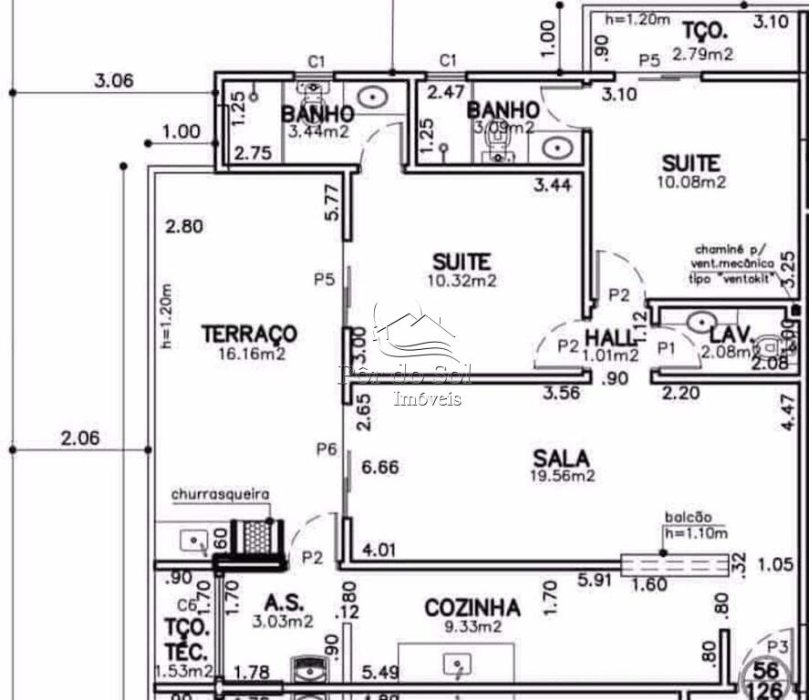 Área Útil91,00m²