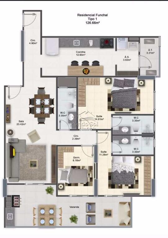 Área Útil126,00m²