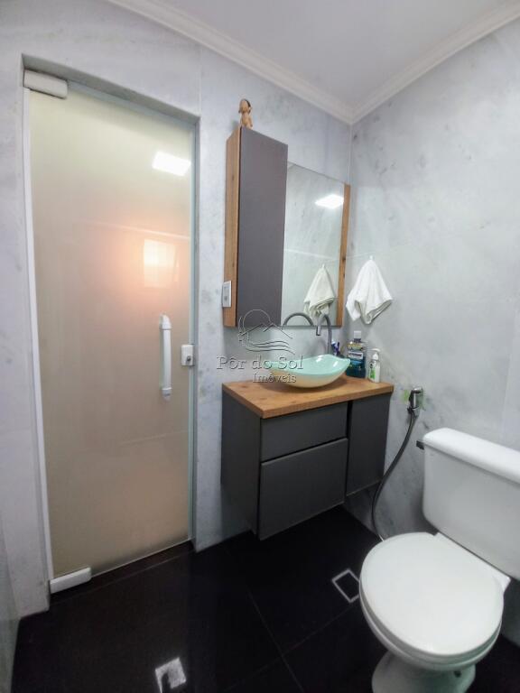 sala ampla 02 ambientes com sacada, cozinha americana com armário planejado, WC social todo revestido