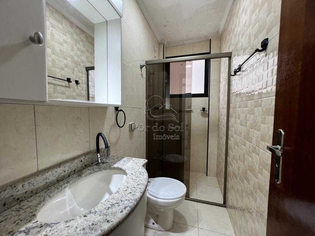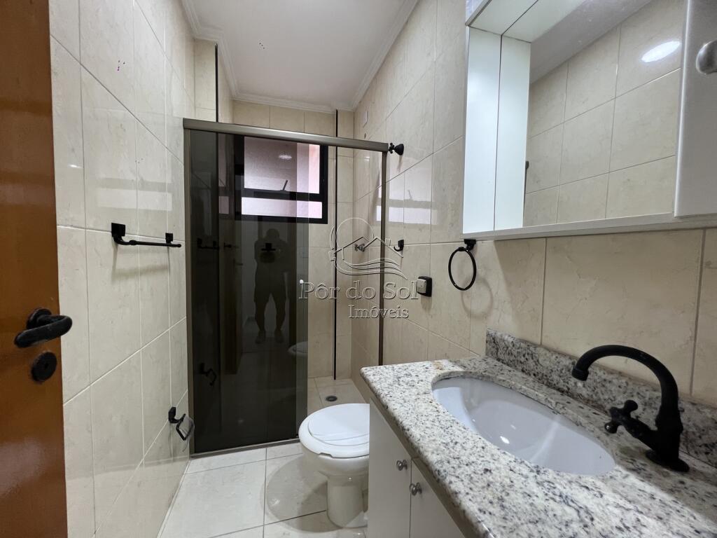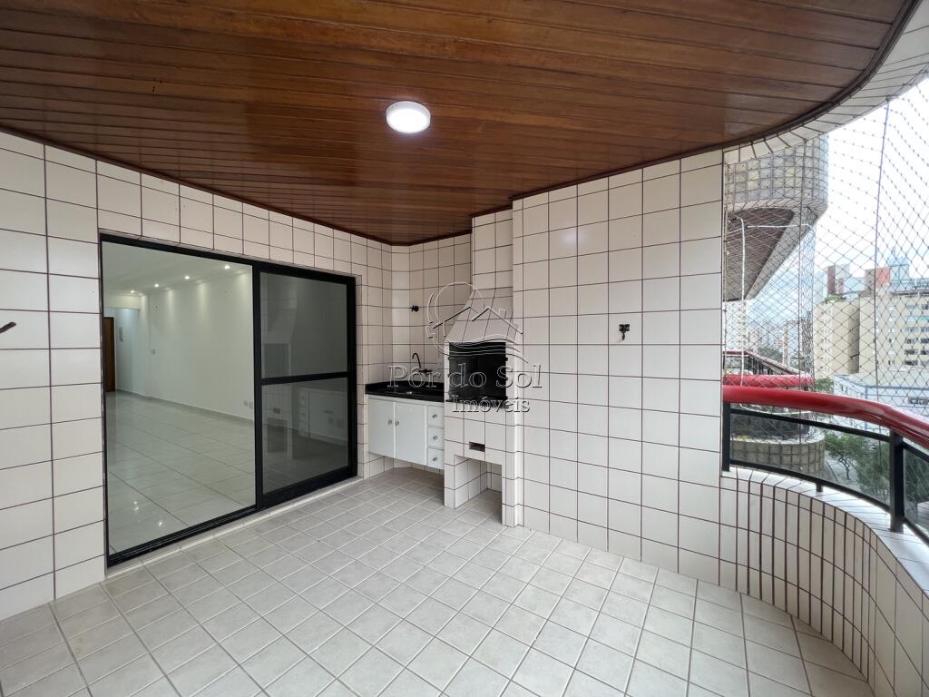 Apartamento amplo com 3 dormitórios, sendo 2 suítes, sala para 2 ambientes com sacada gourmet e vista para o mar, cozinha americana com armários planejados, banheiro social e área de serviço.