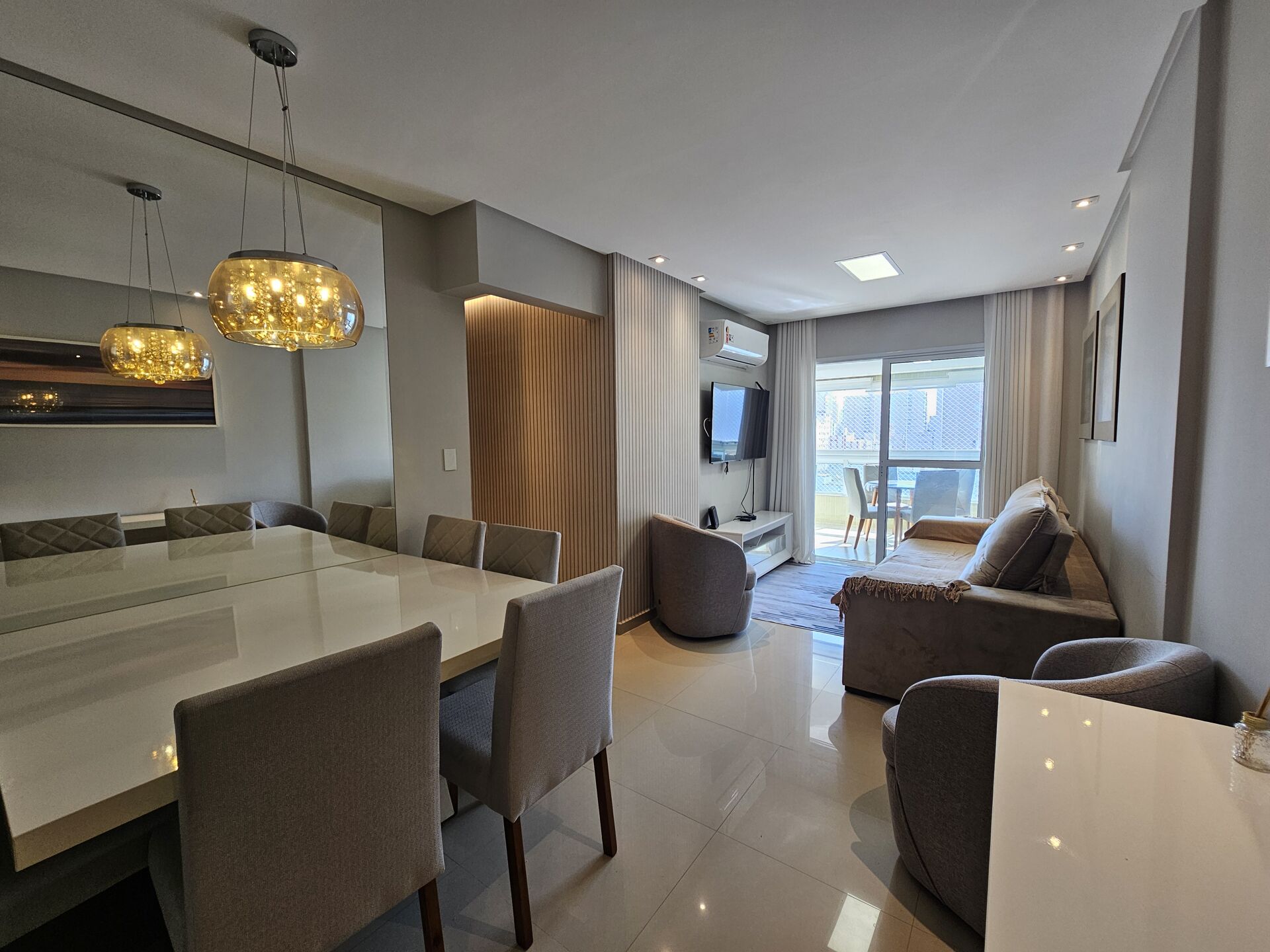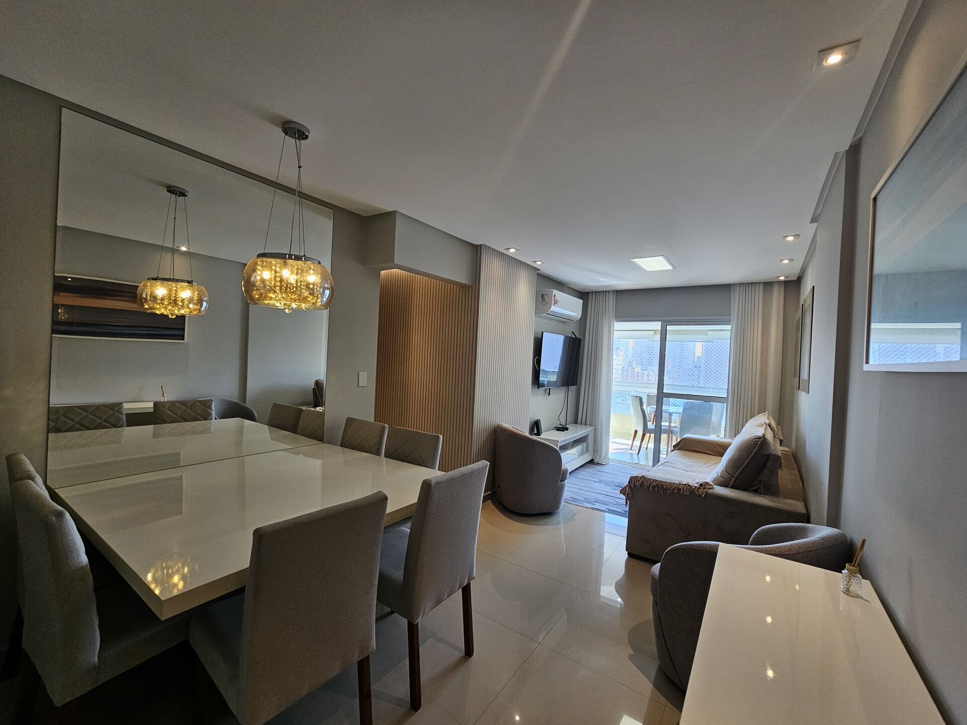 Lindo apartamento, grande, 2 quartos, todos suítes, 3 banheiros, 2 vagas privativas demarcadas, gás encanado, porteira fechada, todo climatizado com ar condicionado, cozinha planejada e vista para o mar