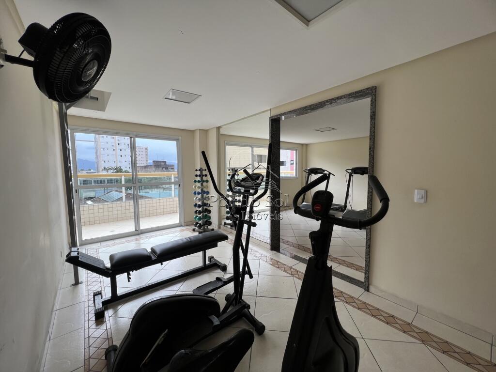 Apartamento com 1 dormitório (suíte), sala para 2 ambientes com sacada gourmet e pequena vista para o mar, cozinha americana, banheiro social, área de serviço, 1 vaga de garagem e armário individual.
